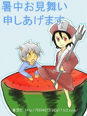 閻魔と鬼男君、可愛いです///スイカに乗っているっていうのがまた素敵です!!